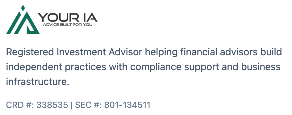 Principals of [DBA] are Investment Adviser Representatives (“IAR”) of Your IA, LLC, and licensed insurance agent in [List States]. Investment advisory services and insurance services are offered through separate entities and are governed by different regulatory authorities. When offering insurance products, DBA is compensated by commissions paid by the insurance company, which creates a financial incentive to recommend certain products. Commission amounts vary by product and carrier. Your IA, LLC does not sell insurance products, is not affiliated with any insurance carrier, and does not receive compensation from insurance sales unless otherwise disclosed in writing. Your IA, LLC is an investment adviser registered with the U.S. Securities and Exchange Commission. Registration with the SEC does not imply endorsement, approval, or a specific level of skill or training.